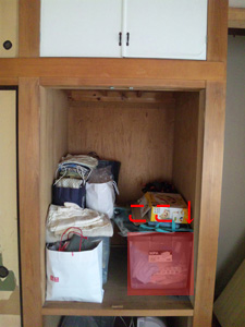 衣装ケースが一つ空きましたが、これには秋冬用の子供のアウターのサイズアウトしたものを入れました。