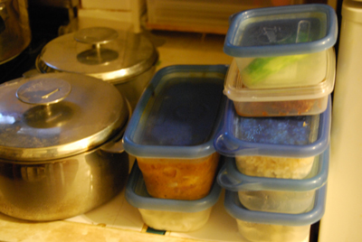 朝一番に冷蔵庫を開けたら、朝ご飯・お弁当に使う食材を一気に冷蔵庫から出しちゃいます。