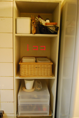 先ほどのジップロックを置いた写真はこの棚の全面です。